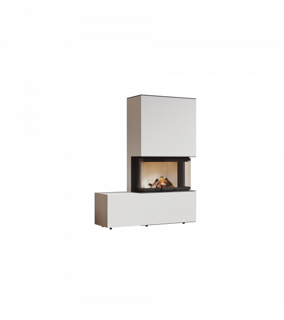 Der neocube P23 der Panorama Serie verfügt über eine nach links ausgerichteten Bank, die dem Ofen eine standhafte Form verleiht. Der L-förmige Aufbau macht den Ofen zu einem besonderen Element im Raum.